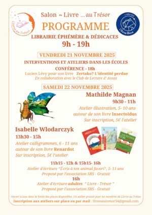 Petits et grands lecteurs, le Salon du Livre … au Trésor est de retour ! Le vendredi 21 et le samedi 22 novembre à Assas.