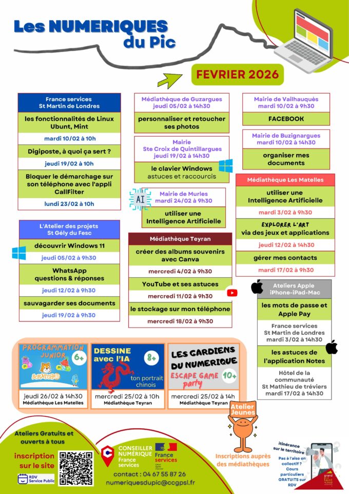 Les Numériques du Pic vous proposent leurs ateliers numériques pour le mois de février 2026